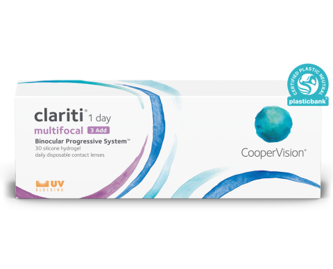 - clariti® 1 day multifocal är plastneutrala. CooperVision kompenserar för plastavfallet från varje såld och distribuerad förpackning av kontaktlinsen clariti® 1 day multifocal.‡1