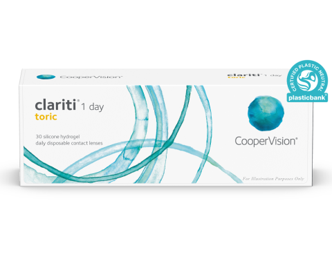 - clariti® 1 day toric är plastneutrala. CooperVision kompenserar för plastavfallet från varje såld och distribuerad förpackning av kontaktlinsen clariti® 1 day toric.††3