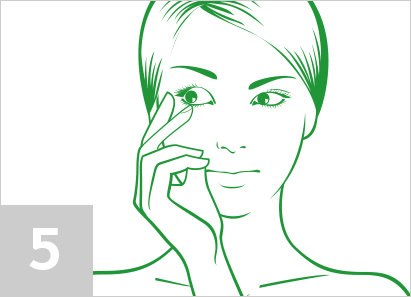 Lyft upp det övre ögonlocket med din fria hand. Dra ned det undre ögonlocket med ”linshandens” långfinger. Håll linsen på pekfingertoppen och placera den på ögat. När linsen satts in, tittar du från sida till sida för att positionera linsen över den färgade delen av ögat. Se till att linsen sitter bekvämt på ögat så att den inte ramlar ut.