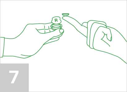 - Om linskanterna fastnar i varandra droppar du på lite ny linsvätska och gnuggar linsen försiktigt i handflatan tills kanterna lossar.