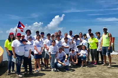 CooperVisions team i Puerto Rico gick samman med Scuba Dogs för att städa bort skräp från en lokal strand som en del i International Coastal Cleanup.