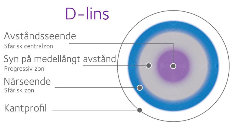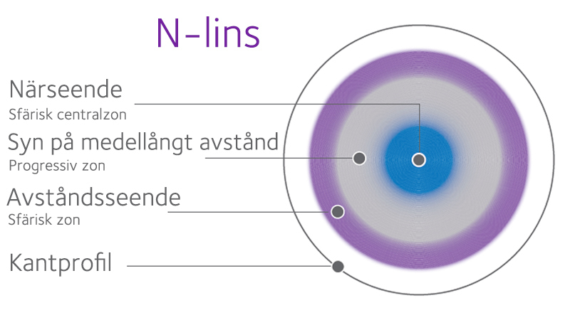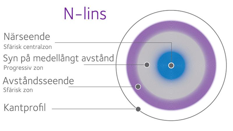 Linszonerna i vår multifokala design är optimerade för samtliga sfäriska styrkor och additioner, och ger möjlighet att tillpassa en central D-lins eller en central N-lins. Detta möjliggör en enklare, flexiblare tillpassning för kunder med presbyopi. Se relevant tillpassningsguide för mer information.