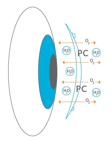 PC Technology™ gör att linserna kan utnyttja fosforylkolin (PC), en mycket hydrofil förening som förekommer naturligt i ögats celler och övriga kroppen. Den binder vatten hårt till linsytan – och övriga linsen – och reducerar den snabba avdunstning som kan leda till torrhet.2